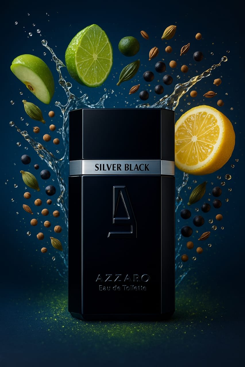Azzaro Silver Black is a bold and modern fragrance for men, designed to exude strength and charisma. It opens with a sharp, fresh burst of green apple and lime, followed by a heart of spicy coriander and juniper. The base is rich and masculine, featuring sandalwood, white musk, and patchouli for a smooth and powerful finish.