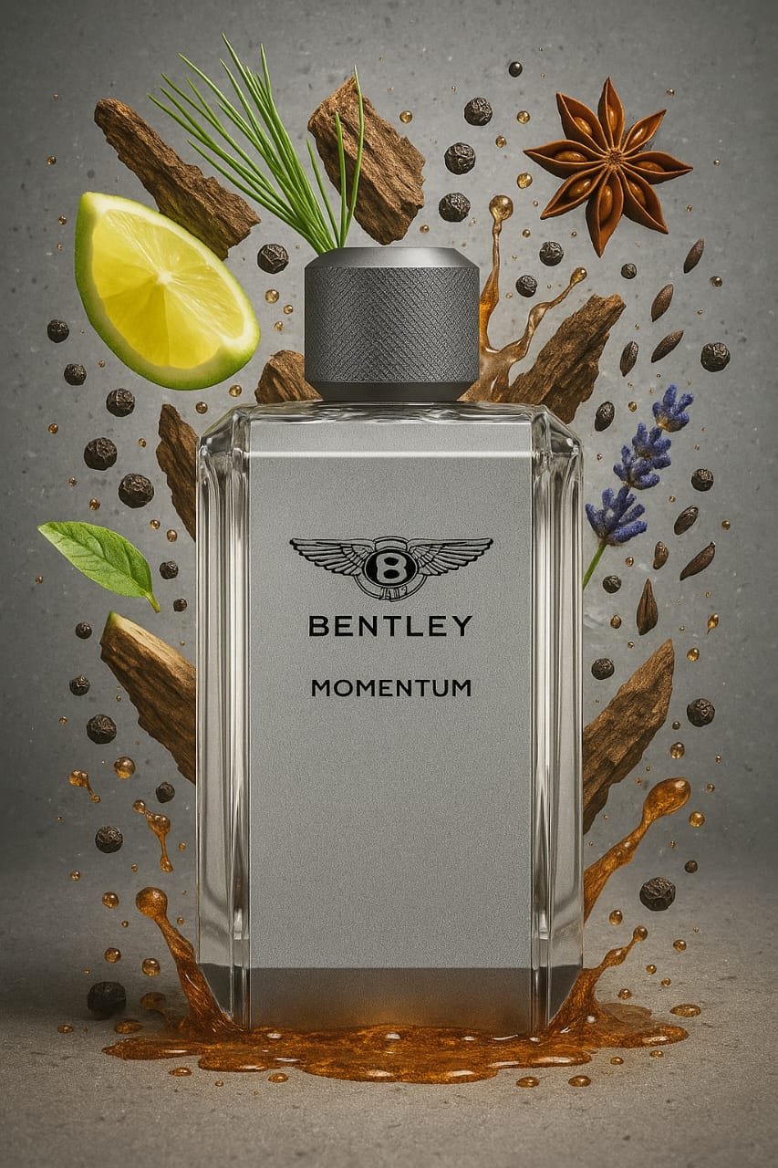 Bentley Momentum is a vibrant and confident fragrance for the ambitious urban man. It opens with an energetic blend of bergamot, green violet, and clary sage, setting a modern and refreshing tone. The heart combines spicy elemi with geranium and tonka bean, while the base delivers a sophisticated finish of ambergris, sandalwood, and musk.